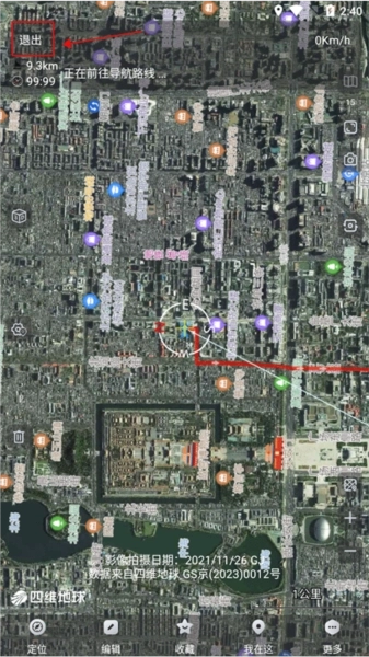 4、接着按照规划好的路线前往目的地就行,要是中途打算退出,点击左上角的退出功能按钮就可以了。