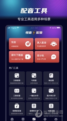 1、启动悦音配音应用,点击界面上的【悦音】选项进入,随后跳转至功能主页。