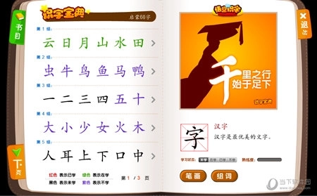 二、识字宝典,您可借助它手动引导孩子复习。该识字宝典以每6字为一组,每组均配备4个对应的游戏。