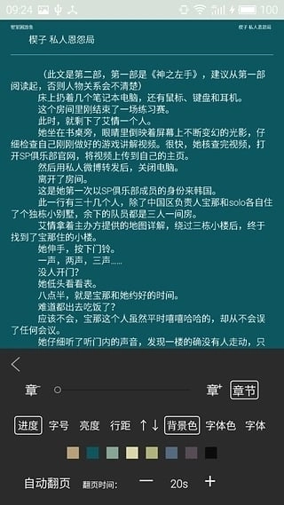 点击屏幕中央可呼出菜单,进而调整字体大小、背景色(比如护眼模式)、行间距等设置。