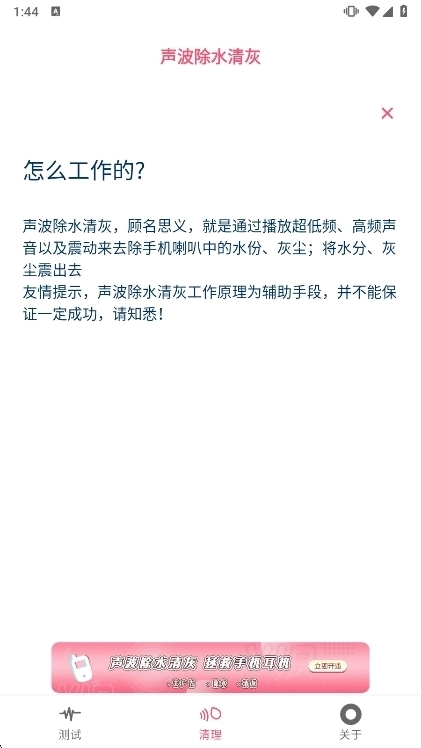 声波除水清灰是一款实用的手机应用,了多种系统功能,方便用户进行各类手机操作;它借助声波震动原理对手机外部进行清理,让设备焕然一新,有效避免损坏,维持良好使用状态;同时还能清理手机内部冗余,释放更多存储空间,使手机运行更流畅、寿命更长久;此外,应用还能帮助用户快速进入睡眠,提升睡眠质量,让你每天都精神饱满、心情愉悦;快来试试这款软件,为你的手机做一次由内而外的深度清洁,让它时刻保持最佳状态吧!
