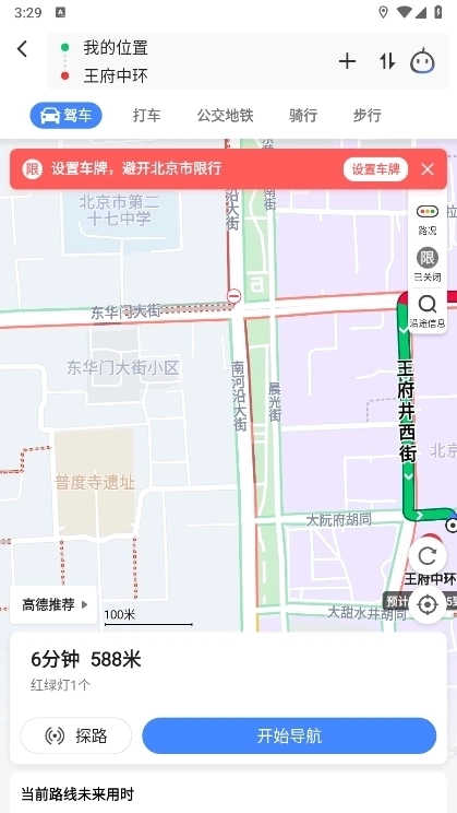 在地图上确认好路线后,点击开始导航即可。