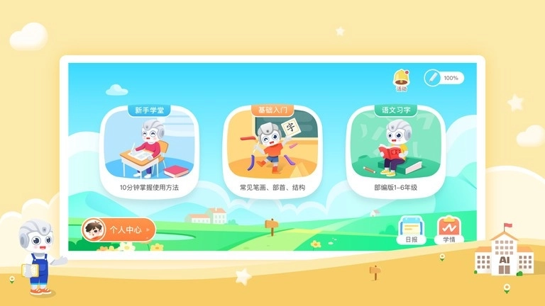 在趣味中融入教育,用心打造“教、学、练、测、评”的完整学习闭环,让孩子在智慧学伴的陪伴下,养成端正坐姿,进行科学练字,每天都能趣味盎然地学习!