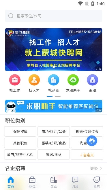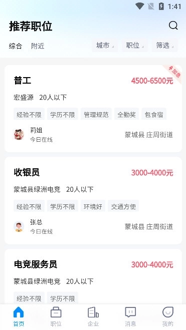 蒙城招聘网是专为蒙城本地求职者与企业打造的一站式移动招聘平台,深度聚焦本地就业需求,致力于搭建高效、可靠的人才对接桥梁。无论是刚毕业的大学生、寻求转行的职场人,还是希望就近就业的居民,都能在这里找到适配的岗位资源,覆盖制造业、服务业、零售业、互联网、教育等多个行业,从基础操作工到高端管理岗,岗位层次丰富多样。为保障信息真实性,平台采用人工核验与智能筛查双重审核机制,对企业资质、岗位描述逐一核查,杜绝虚假招聘与夸大宣传。求职者无需切换多平台沟通,打开即可与HR实时在线交流,咨询岗位细节、薪资福利等问题,企业也能根据自身发展规划精准发布招聘需求,快速筛选合适人才。