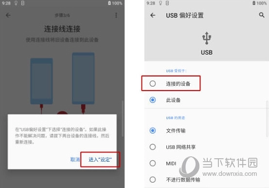 -若连接USB线后未启动数据传输,可查看状态栏中的USB状态提示,通过打开USB通知或进入设定-设备连接-USB,将USB用途设置为“文件传输”。