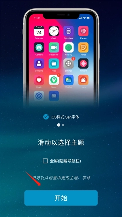 3、滑动选择主题,点击开始。