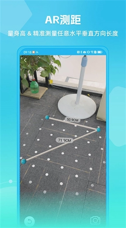 点击屏幕上物体的起始位置,接着点击结束位置,软件便会自动生成一条虚拟的测量线,同时显示出两点之间的距离。