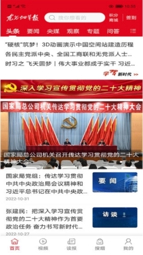 2、全新改版后的客户端主要涵盖“资讯”“视频”“读报”“发现”等核心板块;