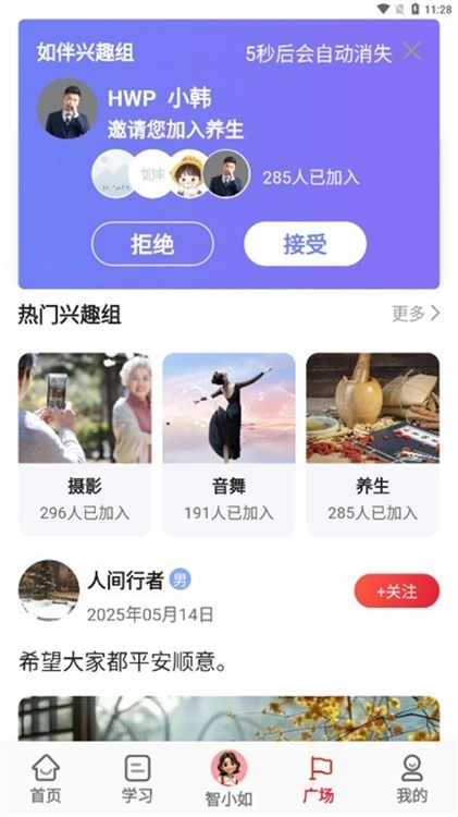 如伴是快乐老人报旗下的一款中老年兴趣社区类手机软件,作为国内专注服务中老年群体的兴趣社交平台,秉持“陪伴每一刻快乐时光”的核心理念,依托多元化兴趣课程、互动性社交场景与个性化服务,助力中老年用户提升自我价值、优化生活品质。平台开设摄影、书法、舞蹈、养生等数十类兴趣课程,拥有专业师资团队,还提供线上交友、线下活动及养老机构资源对接服务,致力于成为国内领先的中老年服务平台。