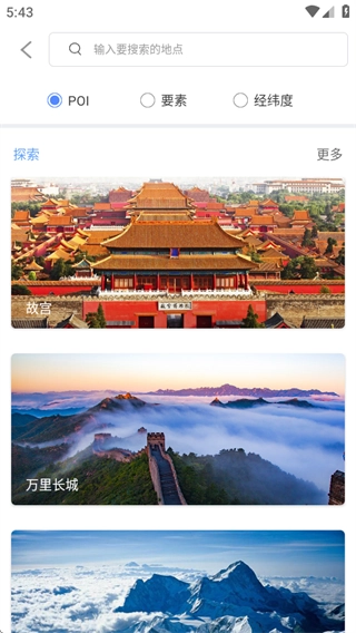 3、具备地点搜索功能,可按POI、要素、经纬度等条件进行搜索;