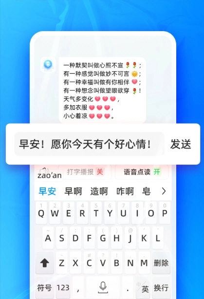有声输入法是一款智能便捷的手机汉字输入工具,具备语音输入功能,操作简便且识别精准,还提供丰富字体与键盘皮肤,能满足用户多样化需求。该软件适配众多品牌手机,可带来更流畅的文字输入体验,有效提升打字速度;同时支持五笔、拼音等多种输入方式,一键切换十分便捷,字体也能一键设置、大小随意调整,方便老年用户使用,运行过程中不会出现卡顿问题。 对于长辈而言,有声输入法手机版堪称聊天“神器”;若与外地人交流,它也能派上大用场——支持20多种方言输入,家乡话也能轻松转化为文字。此外,他人发送的短信可一键自动播报,自己键入的内容同样能通过语音实时广播,大幅提高输入准确性;百万字云输入功能助力精准选词,效率更高;键盘界面支持直接书写,无需中断操作,还能选择温柔女声、可爱童声、甜美女声等多种音色,让打字体验更愉悦。