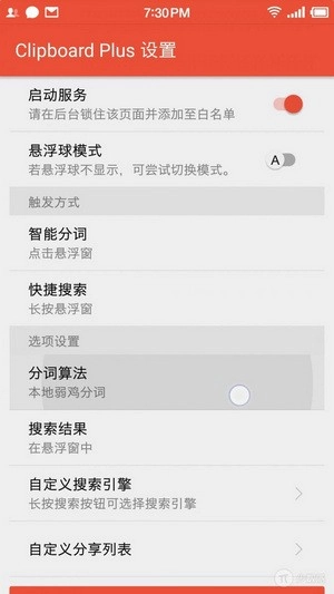 是的,右边这个像极了OneStep的侧边栏是用来分享的。点击侧边栏的图标,可以直接将选中的词分享到特定的应用,和OneStep的体验无异。这款仅有1.83M,只申请3个权限的ClipboardPlus,就可以让你立即尝鲜BigBang的主要功能。