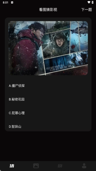 2、进入软件的看图猜剧页面后,即可开始答题,完成答题后能获取积分。