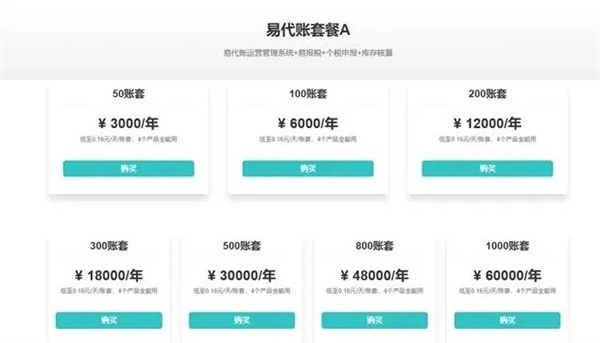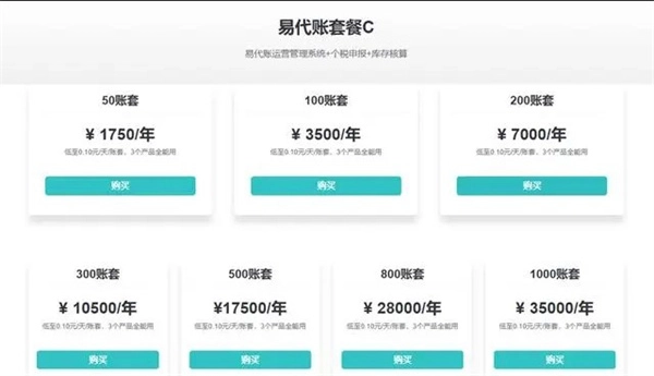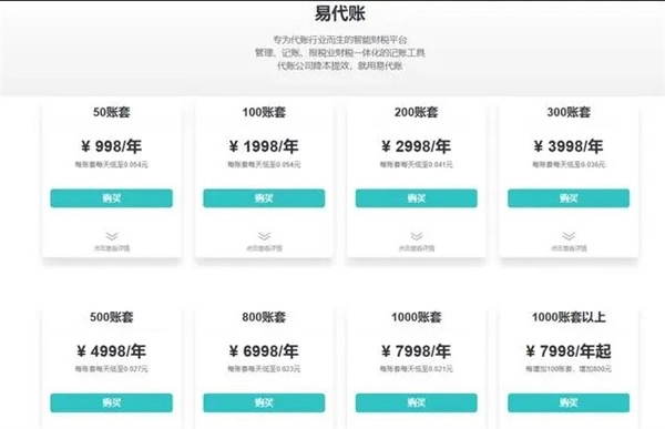 1000账套:35000元/年,低至0.1元/天/账套。