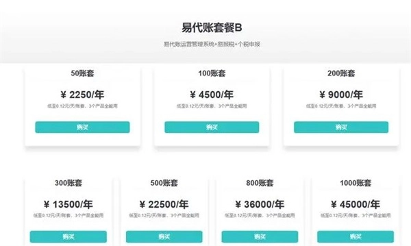 1000账套:45000元/年,低至0.12元/天/账套。