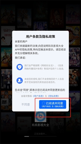 1、首先打开应用,在弹出的用户条款与隐私政策下方,点击【已阅读并同意】按钮。