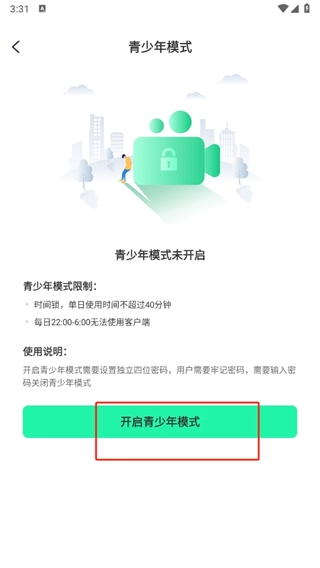 5、进入全新的青少年模式介绍界面后,点击【开启青少年模式】按钮即可完成操作。