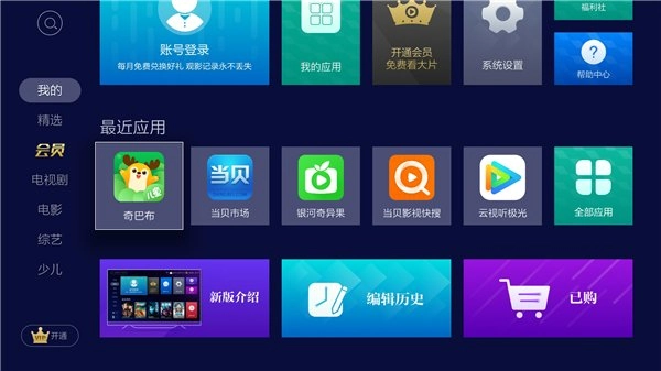 完成之后,电视首页就会显示奇巴布的客户端,下次直接点击客户端就能进入了。