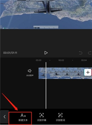 3.进入剪辑界面后,点击底部【文本】选项.