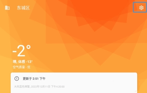 1、打开几何天气,选择界面右上角的设置图标,点击打开