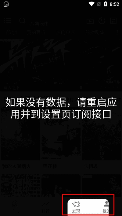 4、如果没有数据,请重启应用并到设置页订阅接口。