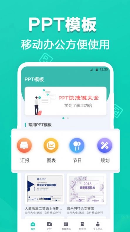 手机PPT模板一款可以进行PPT学习的高效应用软件,这里包含有海量的PPT模板,可以随时轻松在线查看,各种不同类型,适合不同的场合,都可以免费使用,帮助用户们轻松打造PPT,全面的各类型模板,及时高效在线了解各类型模板,使用非常简单易上手,更加省心高效。