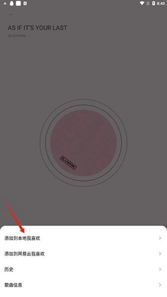 4、进入歌曲里可以看到有添加到本地我喜欢里,点击就可以完成添加了