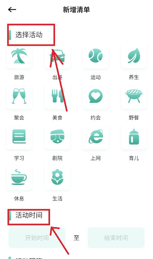 勾选你想要填写的清单内容,并填写出门旅游的预期时间,就能完成添加。