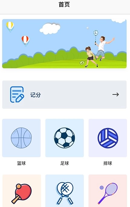 2、包含了羽毛球、足球、乒乓球、排球和网球等球类比赛项目,实时记录进球数和比赛分数。