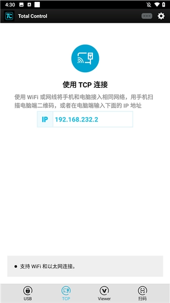 total control是一款专为投屏需求打造的实用手机软件,能让用户轻松实现投屏操作。它不仅支持将手机界面投射到电脑,还可通过电脑反向操控手机,使用起来十分便捷。此外,该软件具备手机与电脑间的文件传输功能,同时支持录屏和截屏,无论是编辑短信、观看视频都能保持流畅体验,用来玩游戏也能为玩家带来别样乐趣。