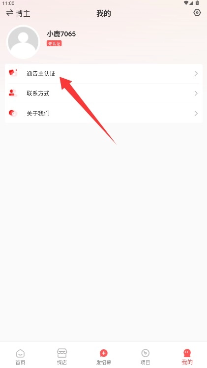 进入个人中心主界面后,找到并选择通告主认证功能,随后启动身份资质验证的操作流程。