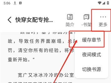 2、点击右上角“更多”→选择“缓存章节”;