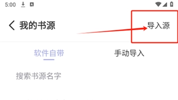 2、点击“我的书源”→右上角“导入源”;