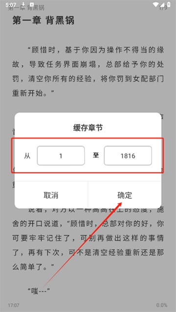 3、选定章节范围→一键缓存,随时离线阅读。