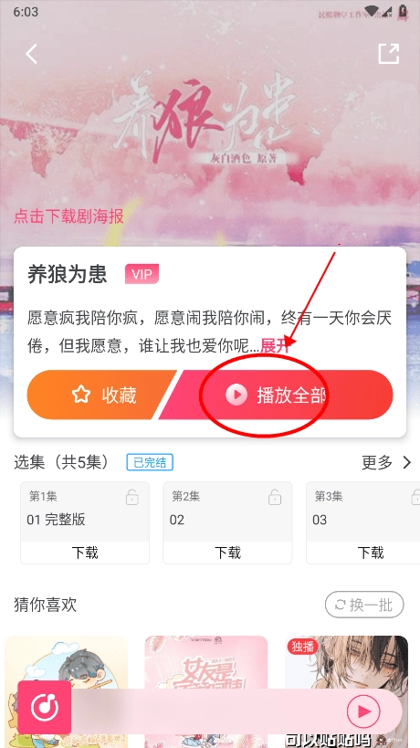 2、进入《养狼为患》的播放页面后,点击“全部播放”按钮,系统将提示你登录账号;