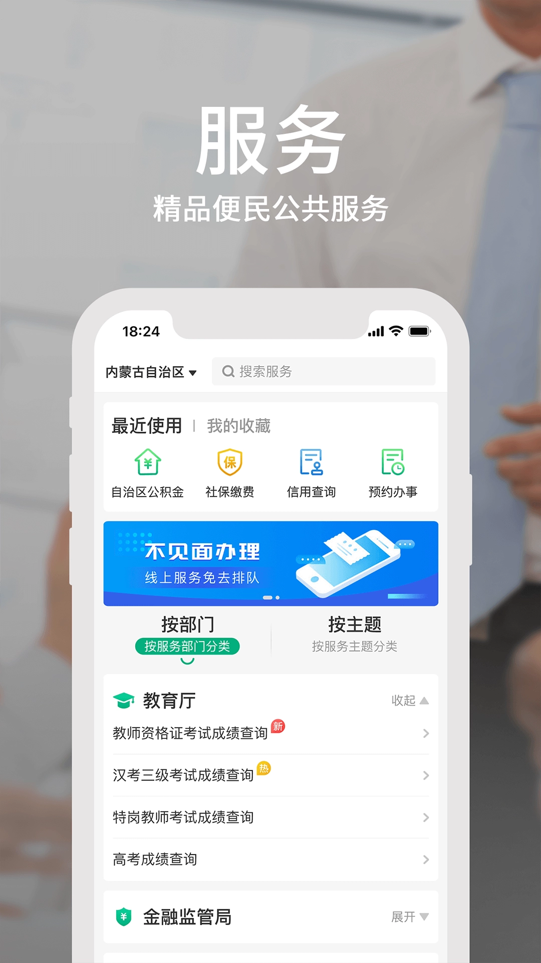 1.这是专门为内蒙古本地用户开发的全新政务服务版本,界面简洁明了,各项功能的分类也十分清晰明确。