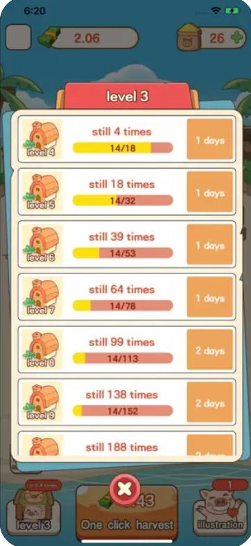 1、游戏采用放置玩法,玩家只需一次操作,就能放置一整天无需额外打理。