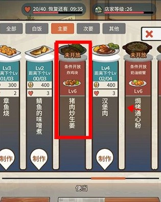 - 料理升级:制作某道料理多次后,它会升到更高的等级。例如,炸鸡块达到6级后,你将解锁新的料理——猪肉炒生姜。