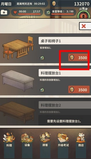 - 顾客需求:随着玩家等级的提升,顾客的到来将变得越来越频繁,每个顾客的需求也不同。通常,玩家需要提前准备好食物,以满足顾客的需求。