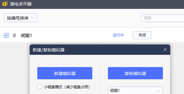 2、游戏安装完成后,别急着启动游戏。先打开雷电多开器,在其中勾选第一个0号模拟器,接着点击“新增/复制模拟器”选项,随后选择“复制模拟器”。