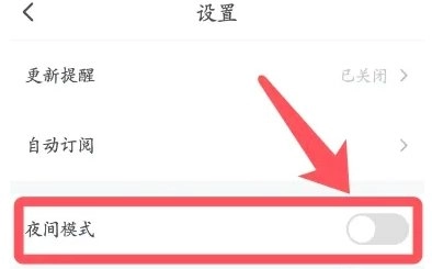 第三步:在设置页面,把【夜间模式】开启即可,如图所示。