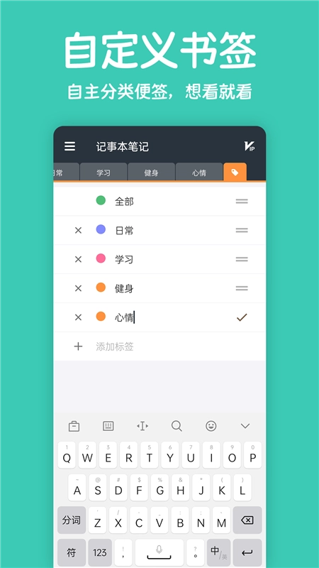 4、你可以随时在这里自由记录,而且还能使用不同的标签;