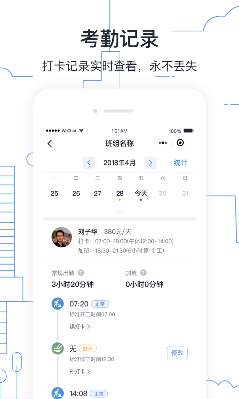 墨计考勤软件是一个非常便捷的移动考勤管理软件,这款软件非常适合建筑行业的用户使用,通过这款软件,建筑行业的班组长可以更加方便的进行工人考勤和人员工资的管理。包含的功能非常方便,支持手机上刷脸打卡,能够有效的避免排队浪费时间,而且随时随地都可以查看考勤记录,更加的方便好用。