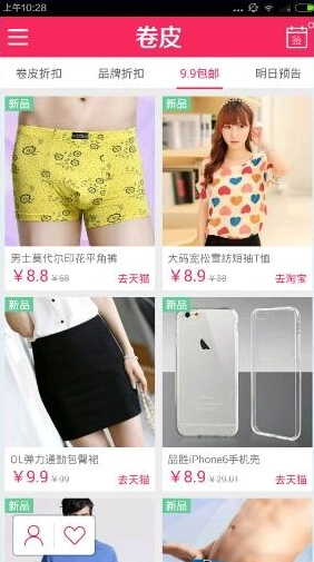 1、打开软件后即进入到卷皮折扣页面,即可看到最新的商品折扣信息。