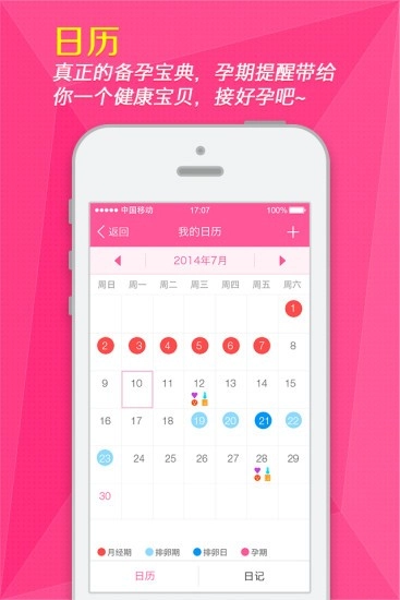 该应用方便女性在任意时间,记录属于女人的秘密。女性朋友们可以通过记录每一天的事迹,比如说昨晚跟LG那个啥了!当然,还记录了今天大姨妈—月经来了,应用将根据你所记录的信息,通过图表的方式,告诉你生理期是否正常,并对比多次的记录,检查身体健康状况。有些粗心的亲,常常会忘记自己的例假,意外的怀孕会导致严重的后果;某少妇有备孕计划,需要判断身体的状态是否适合怀孕等等。新版的应用更是增加了私密空间交流功能,亲们可以交流避孕常识、交流男女话题,来个避孕大作战!