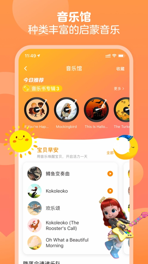 3、音乐馆功能的使用,可让孩子一边儿歌,一边学唱而儿歌。