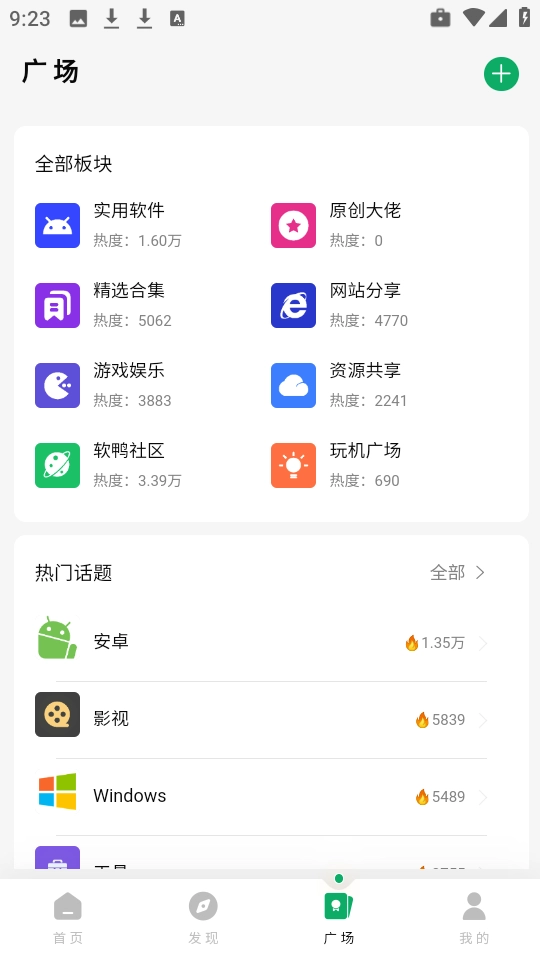 3、切换到“广场”页面,挑选你感兴趣的分类板块进入浏览。