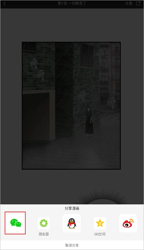 2、可以随意挑选一种分享途径,分享完成后,漫画会以长图的形式显示在浏览器里,此时我们只需要下拉窗口,点击保存按钮就能完成保存了。