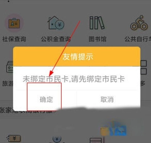 当系统提示未绑定市民卡时,按“确定”进行操作。