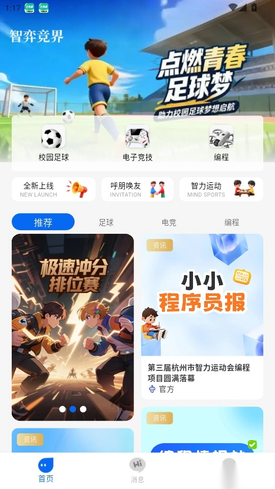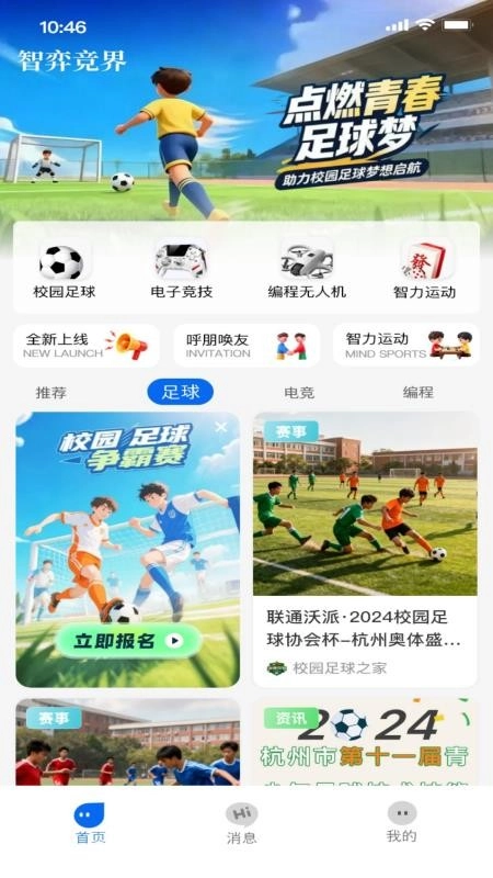 智弈竞界最新版是一款专注于数字化智力运动服务的平台型软件。它整合了足球、电竞、编程等多元领域的智力运动实时资讯,用户可随时追踪各类赛事动态,便捷报名参与感兴趣的赛事活动,轻松获取一手赛事信息,探索更丰富的智力运动内容。此外,软件还提供了详细的智力运动科普板块,帮助用户快速入门了解相关知识。平台会持续更新推送最新资讯,确保用户及时掌握行业动态。感兴趣的用户不妨下载智弈竞界免费版体验使用!